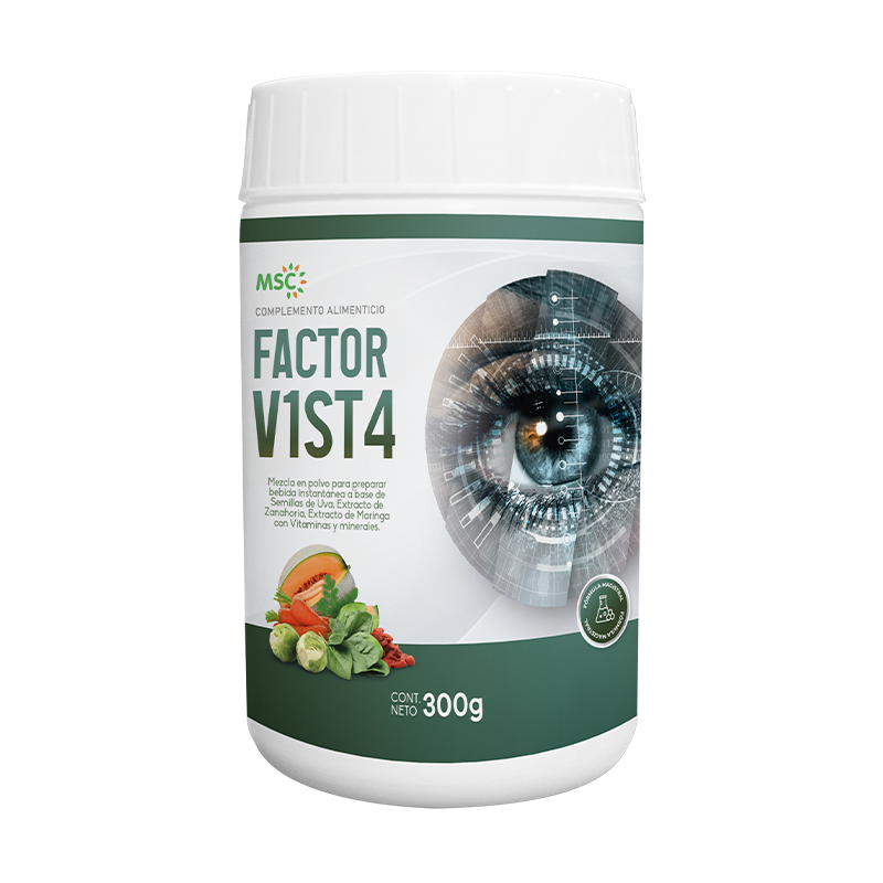 Factor V1sta es un complemento alimenticio a base de ingredientes naturales con propiedades antioxidantes, antiinflamatorias y anti envejecimiento. Sus insumos buscan proteger los ojos de los radicales libres, aliviar la inflamación o irritación ocular, proteger la retina de la degeneración macular, prevenir enfermedades oculares como cataratas, reducir la presión intraocular, mejorar la agudeza visual y reducir la visión borrosa.